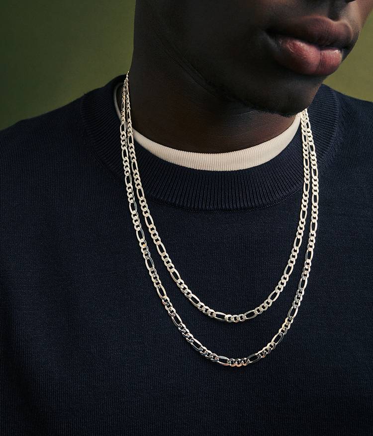 The most versatile length which sits just below the collarbone. It rests comfortably at the upper chest, making it versatile to wear over a tee or under an open collar. This length works well on most builds and offers a clean, elevated look without feeling too oversized.
